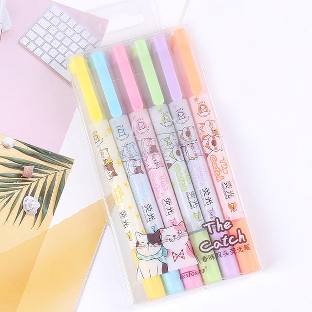Marca texto cor pastel gatinhos com cheirinho duas pontas The Catch Tenfon