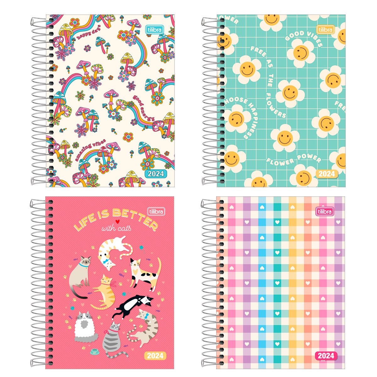 Agenda espiralada com visão de 1 dia por página, exceto sábado e domingo. Possui capa dura e bolsa plástica para guardar trabalhos e anotações. Ideal para a organização do dia a dia.