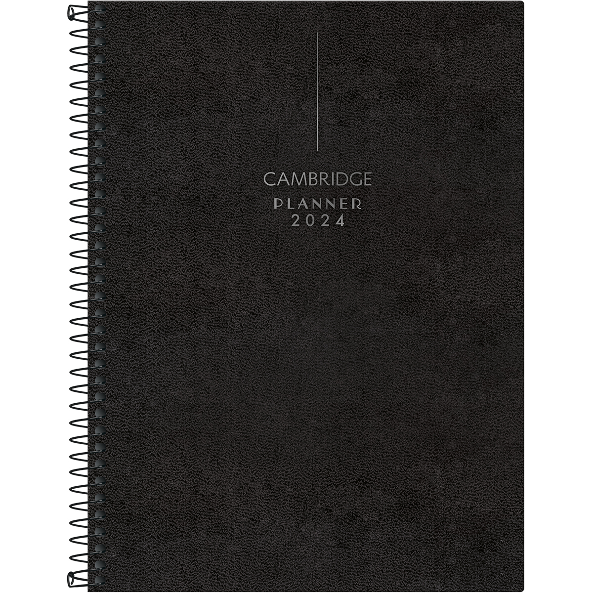 O Planner Executivo Espiral 20 x 27,5 cm Cambridge 2023 pode ser usado para organizar os compromissos do dia a dia, em casa e no trabalho. O produto possui capa em material especial na cor preta, hot stamping, acabamento espiral, miolo com 100 folhas, com visões anual, mensal e semanal, e bolsa plástica.