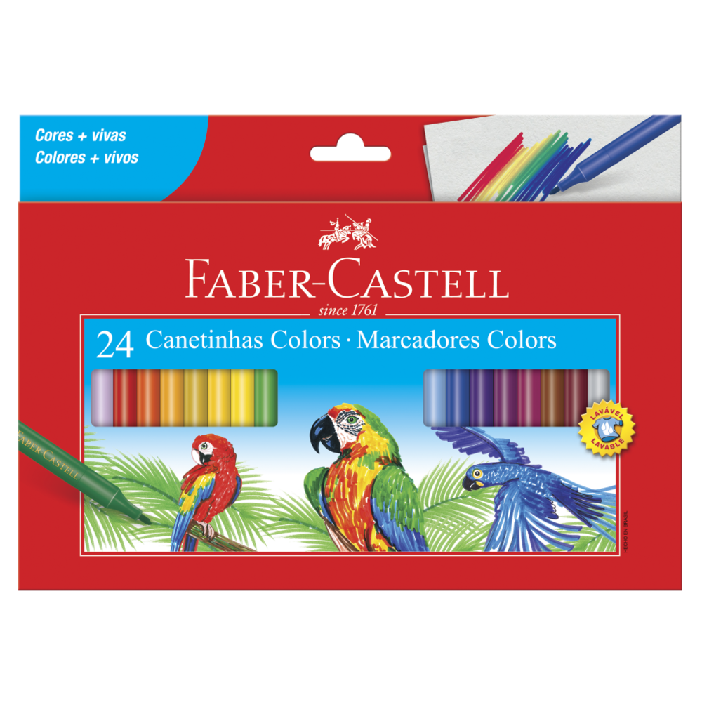 As canetinhas hidrográficas Faber-Castell estimulam a criatividade das crianças com a formulação exclusiva de corantes de alta qualidade com cores mais vivas. As canetinhas tem ponta média, a tinta é lavável e o produto é atóxico.