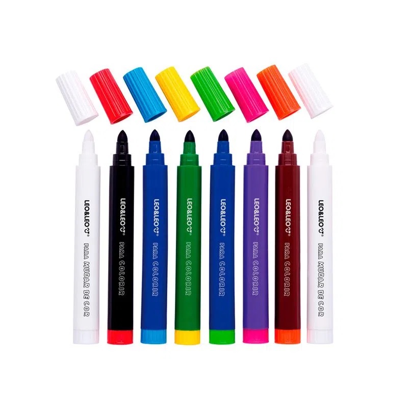 marcadores coloridos e mais dois marcadores brancos com o poder de transformar