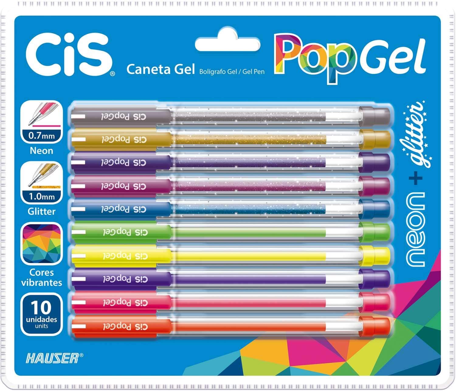 Caneta Pop Gel Neon 0.7 + Glitter 1.0 com 10 unidades Cis