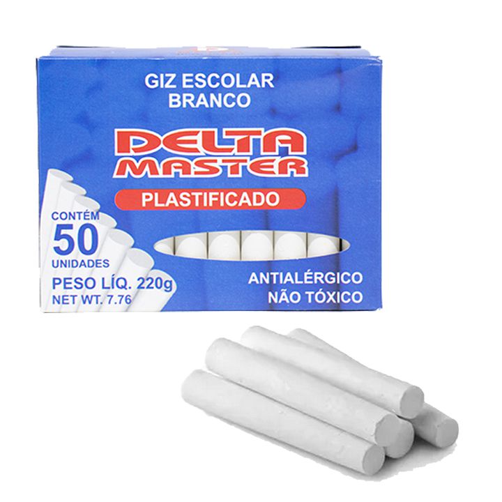 Giz Escolar Branco Plastificado Delta 50 Unidades