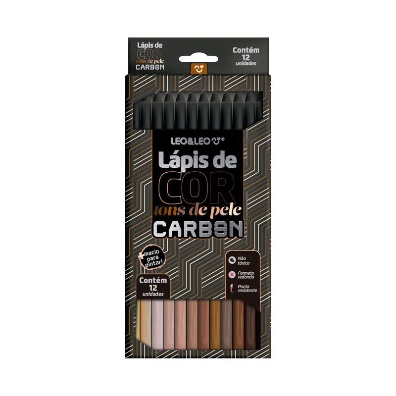 com corpo de madeira preta com dip colorido. O Lápis de Cor Carbon é atóxico,
