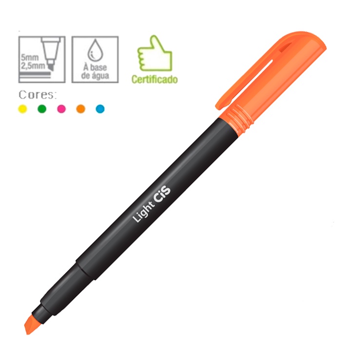 O Marca Texto Light Cis possui ponta chanfrada, ideal para destacar e sublinhar linhas e textos. Produzido à base de água, não tóxico com secagem rápida que permite marcar com mais praticidade.